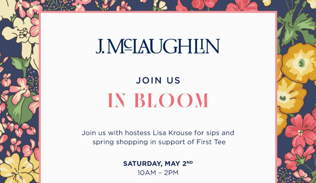 Join us for a special event in partnership with J.McLaughlin. Refreshments and bites will be available with an opportunity to explore their latest collection— all in support of First Tee’s mission.